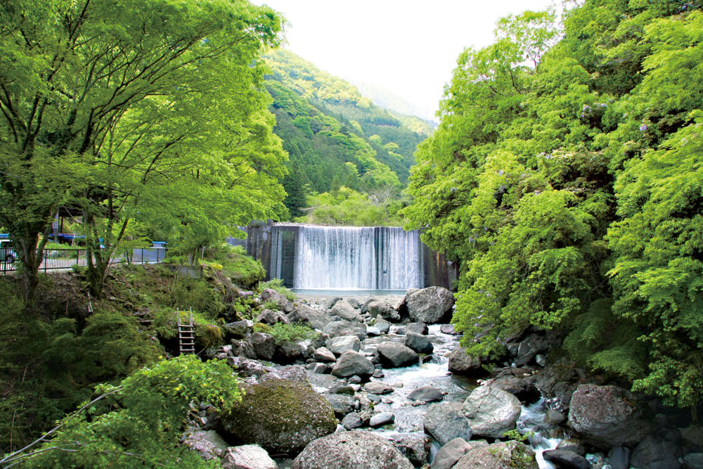清流と大自然を満喫できる福士川渓谷沿いには、アウトドアを楽しめるキャンプ場が点在する。夏の水遊び、秋の紅葉が魅力。