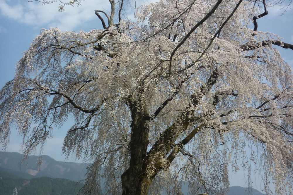 南部町原間にあるイトザクラの巨木です。町の天然記念物に指定されています。すぐ近くには「本郷の千年桜」があります。周辺の里山風景とともに散策を楽しんではいかがでしょう。