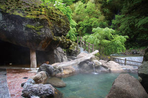 温泉滝を間近に見られる秘湯「天狗の湯」が人気。子宝の湯としても名高い。単純硫黄冷鉱泉。料金は1000円(食事付3500円〜)...